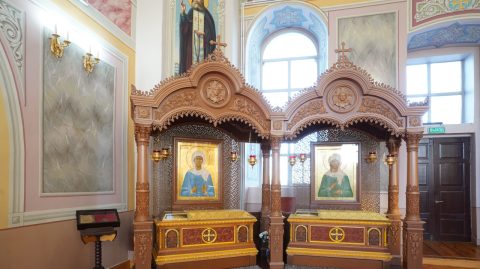 Екатерининский собор взорвали в 1938 году. Но чтимый список иконы «В скорбех и печалех утешение» верующие спасли от уничтожения. И когда в 2012 году возрождённый храм святой Екатерины открылся, святыня вернулась под его своды.